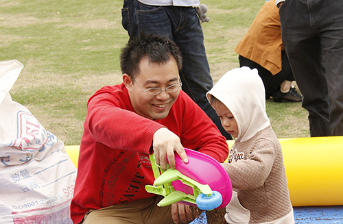 為了讓到場的所有員工及其家人玩得開心,工作人員準(zhǔn)備了多種家庭競技和團隊挑戰(zhàn)項目?!把蚪乔蚋傎悺?、“合力運氣球”、“無敵風(fēng)火輪”、“快樂DIY”、“城堡滑梯”等親子游戲趣味十足,逗得小朋友們樂開了懷。在團隊挑戰(zhàn)區(qū),“巨人腳步”、“鼓舞人心”、“無間道”、“龍舟競技”等項目參與者眾多,場面熱鬧,“真人CS”更是讓大家不惜冒雨排著長隊等候。