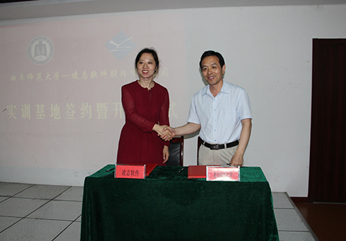 凌志軟件龐軍副總裁與曲阜師范大學信息工程學院領導簽訂了實訓基地合作協(xié)議,并為“曲阜示范大學教學實訓基地”揭牌。