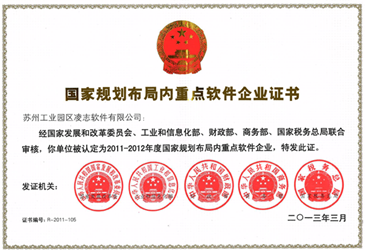 由國(guó)家發(fā)改委、工信部、財(cái)政部、商務(wù)部和國(guó)家稅務(wù)總局共同開(kāi)展的國(guó)家規(guī)劃布局內(nèi)重點(diǎn)軟件企業(yè)和集成電路設(shè)計(jì)企業(yè)認(rèn)定工作,是貫徹落實(shí)《國(guó)務(wù)院關(guān)于印發(fā)進(jìn)一步鼓勵(lì)軟件產(chǎn)業(yè)和集成電路產(chǎn)業(yè)發(fā)展的若干政策的通知》(國(guó)發(fā)[2011]4號(hào)),鼓勵(lì)并推動(dòng)重點(diǎn)軟件企業(yè)和集成電路設(shè)計(jì)企業(yè)加快發(fā)展的重要舉措。國(guó)家規(guī)劃布局內(nèi)的重點(diǎn)軟件企業(yè)資格成為衡量軟件企業(yè)實(shí)力、評(píng)價(jià)企業(yè)是否具備承接重大軟件項(xiàng)目能力的重要標(biāo)尺。獲認(rèn)定的企業(yè)須均是符合國(guó)家戰(zhàn)略性新興產(chǎn)業(yè)發(fā)展規(guī)劃,及信息產(chǎn)業(yè)發(fā)展規(guī)劃,并在全國(guó)軟件行業(yè)中具有競(jìng)爭(zhēng)優(yōu)勢(shì)的企業(yè)。2011-2012年度江蘇省內(nèi)僅12家企業(yè)入選,凌志軟件是工業(yè)園區(qū)也是蘇州第二家獲得此資質(zhì)的軟件企業(yè)。