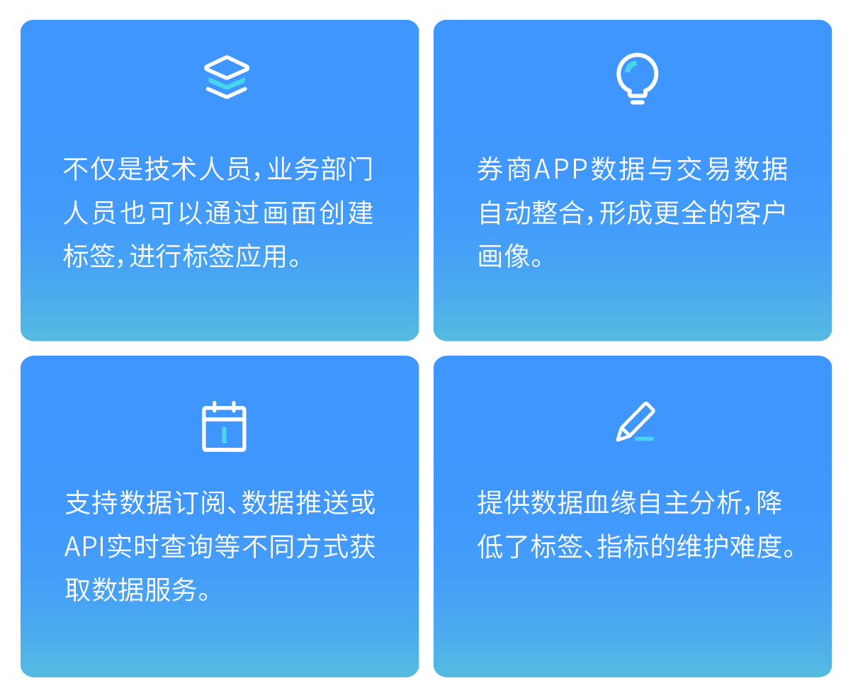 支持為任意實(shí)體打標(biāo)簽:除了支持為用戶畫像打標(biāo)簽、指標(biāo)加工之外,還支持為產(chǎn)品、資訊、員工、公司等實(shí)體打標(biāo)簽。