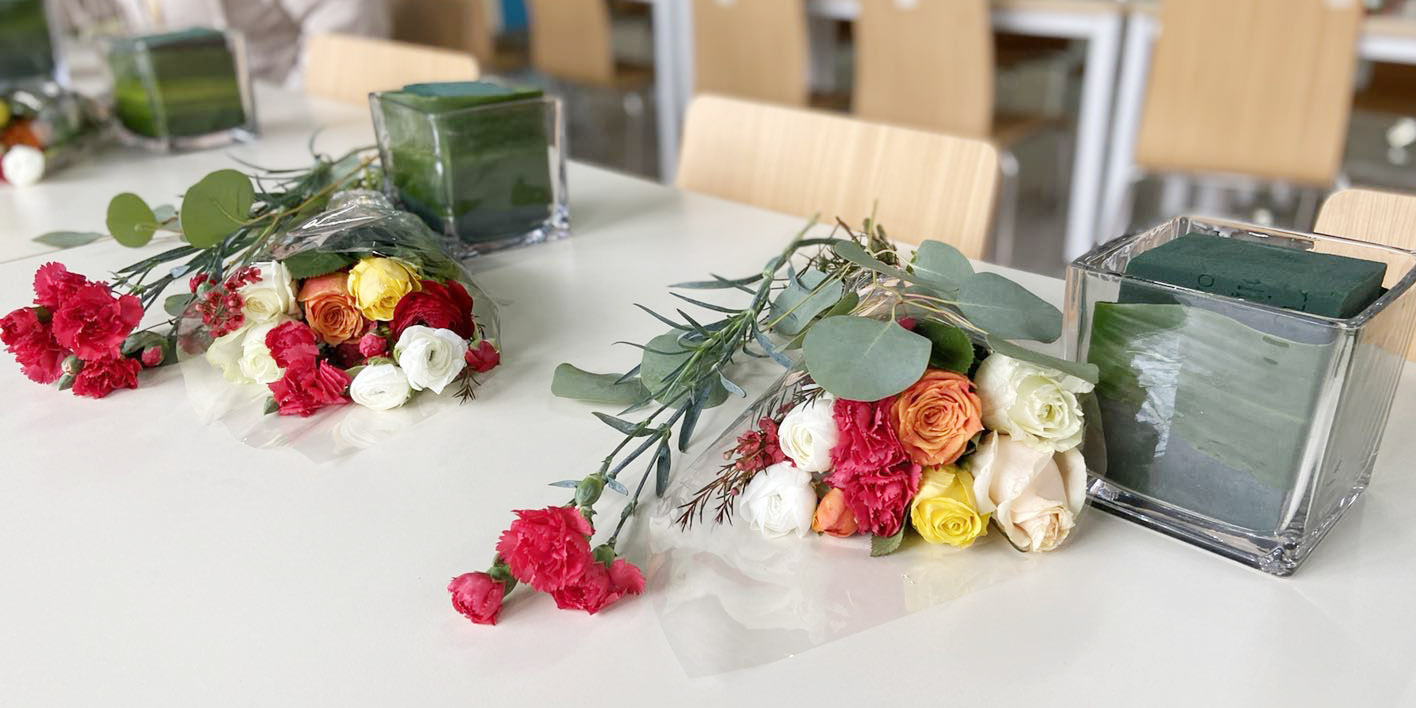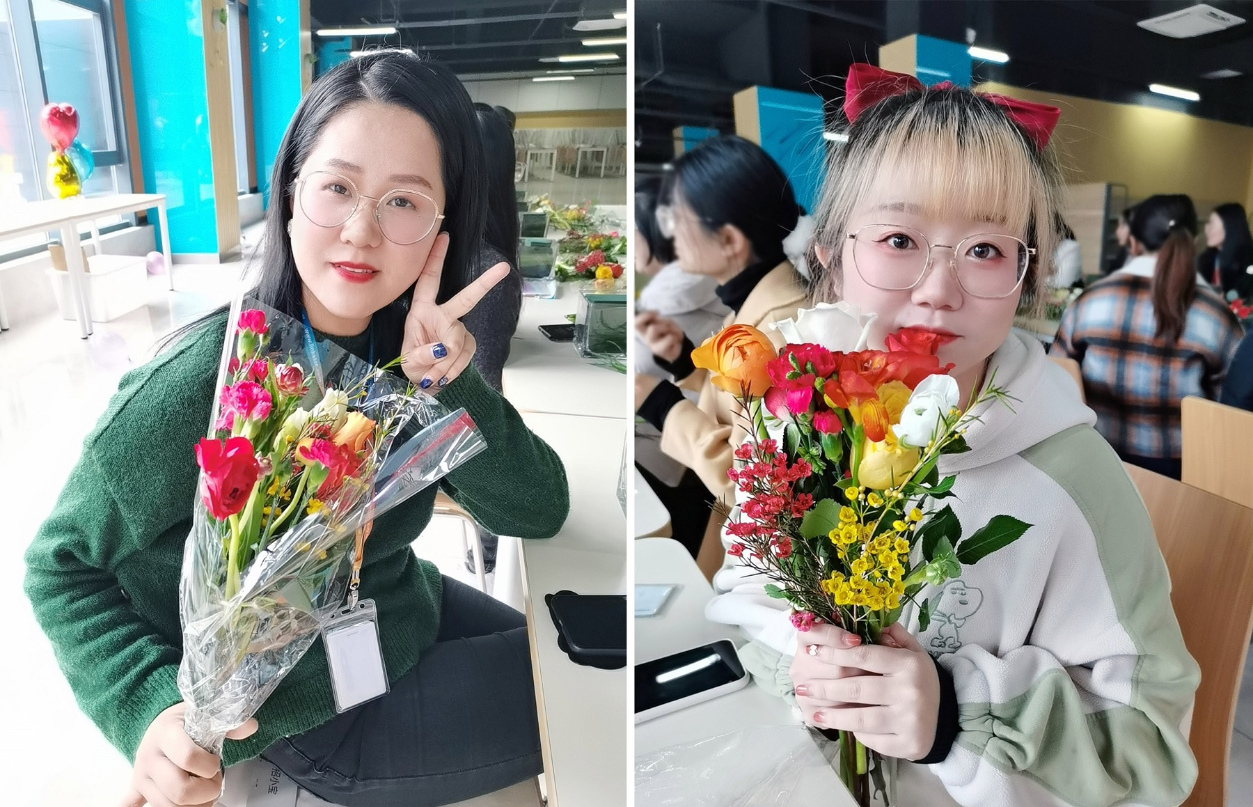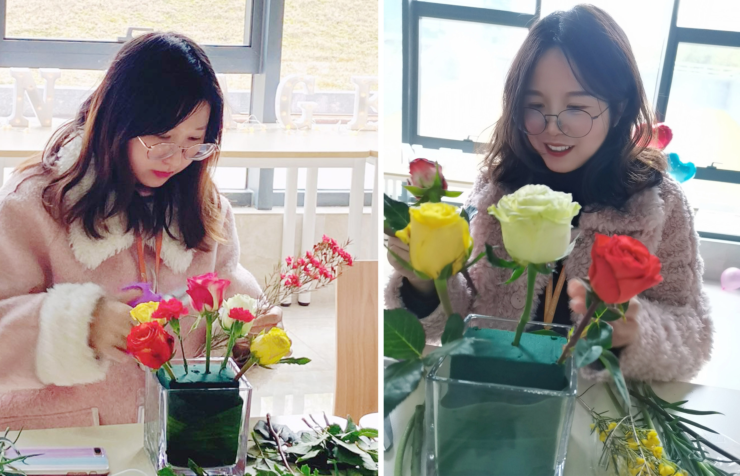 看著自己親手完成的作品,感受著從手中綻放的清香與浪漫,大家紛紛合影留念,記錄自己創(chuàng)造的獨一無二的美好。