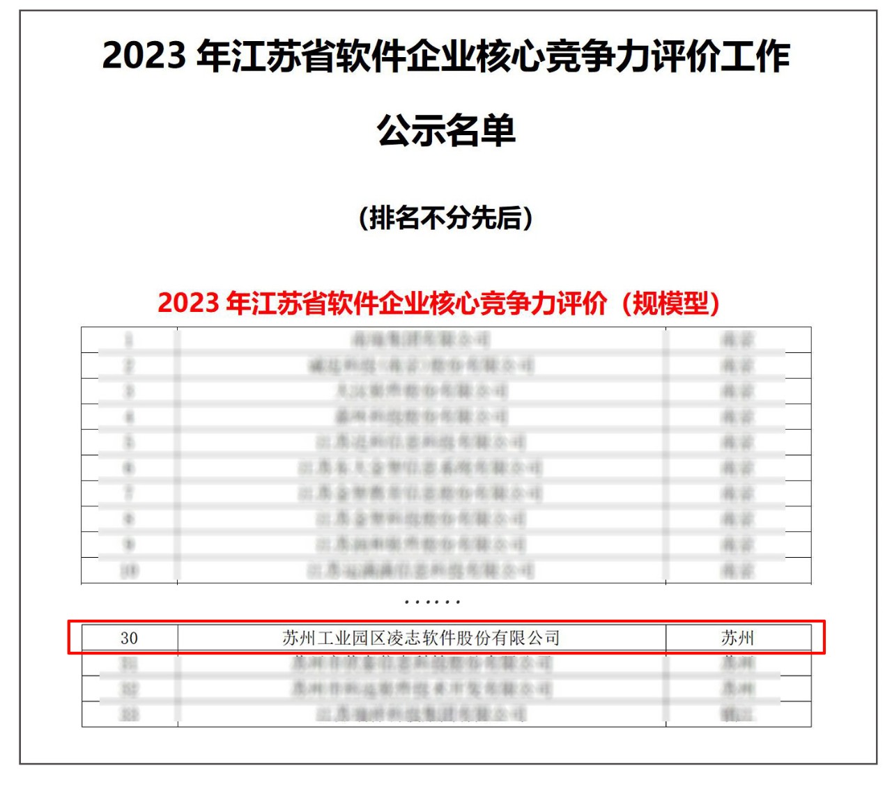 日前,江蘇省軟件行業(yè)協(xié)會(huì)發(fā)布“2023年江蘇省軟件企業(yè)核心競(jìng)爭(zhēng)力評(píng)價(jià)工作”公示名單,從規(guī)模型、成長(zhǎng)型、創(chuàng)新型、出口型、創(chuàng)新創(chuàng)業(yè)型五個(gè)細(xì)分領(lǐng)域評(píng)選出了核心競(jìng)爭(zhēng)力強(qiáng)勁的頭部企業(yè),并授予省級(jí)榮譽(yù)稱號(hào)。凌志軟件憑借扎實(shí)穩(wěn)健的發(fā)展態(tài)勢(shì)和先進(jìn)創(chuàng)新的研發(fā)實(shí)力成功獲評(píng)“2023年江蘇省軟件企業(yè)核心競(jìng)爭(zhēng)力(規(guī)模型)企業(yè)”!